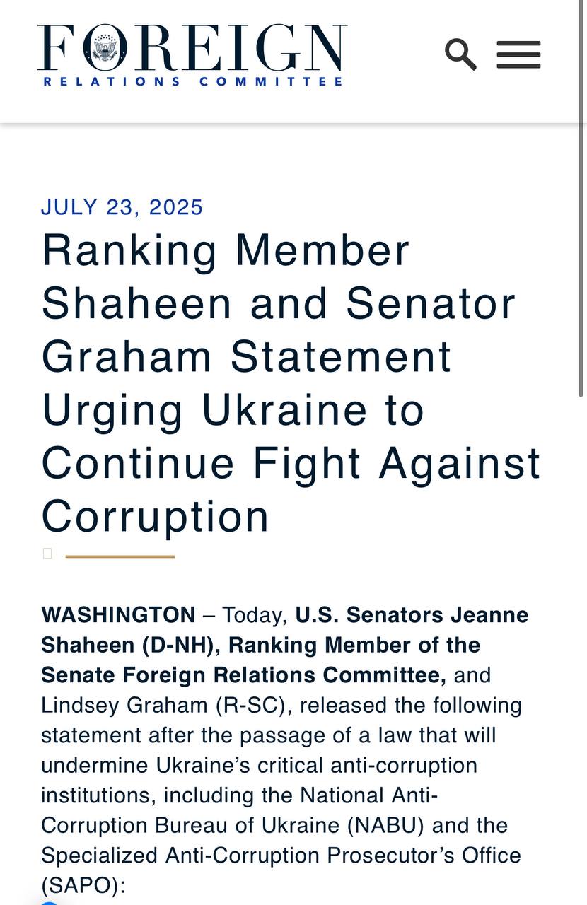 Вопреки утверждениям Офиса Президента, что якобы именно республиканцы требовали такого шага как элемент борьбы с демократами, сенатор Линдси Грэм, один из ключевых союзников Дональда Трампа, выступил с жёсткой критикой закона.