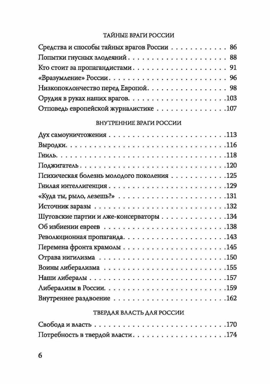 В предлагаемой небольшой книге собраны характерные для Каткова политические произведения. В них уделено внимание как проблеме сильной власти и борьбы с терроризмом, так и национальному вопросу, утверждению первенства русской нации, необходимости политического, административного и культурного единства Империи, неприятию государства в государстве. Сравнительная лапидарность сборника позволит быстро ознакомиться с основными идеями Каткова. Хотя в нем не представлены многие прекрасные в литературном плане тексты, например очерк о Бакунине.