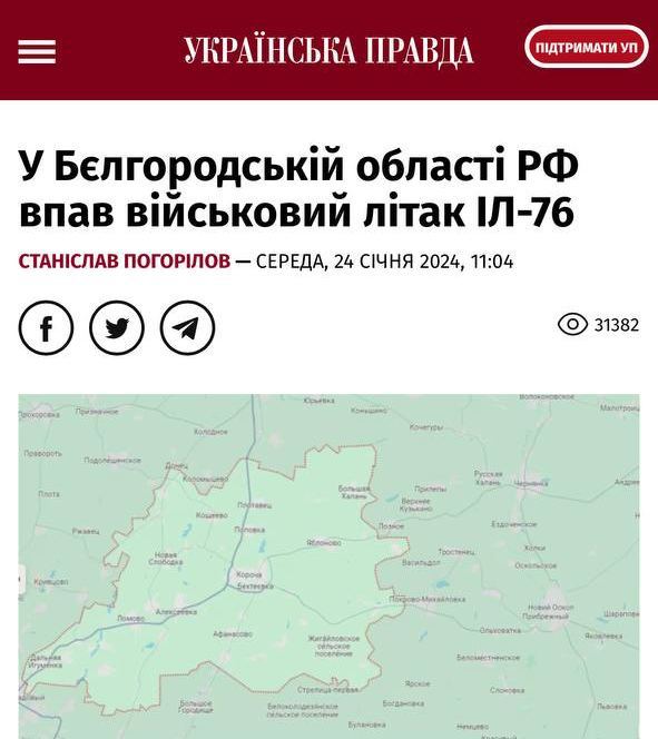 Украинские СМИ начали редактировать сообщения о поражении ВСУ российского борта Ил-76. На котором везли 65 пленных украинцев для обмена в Краснояружском районе Белгородской области.
