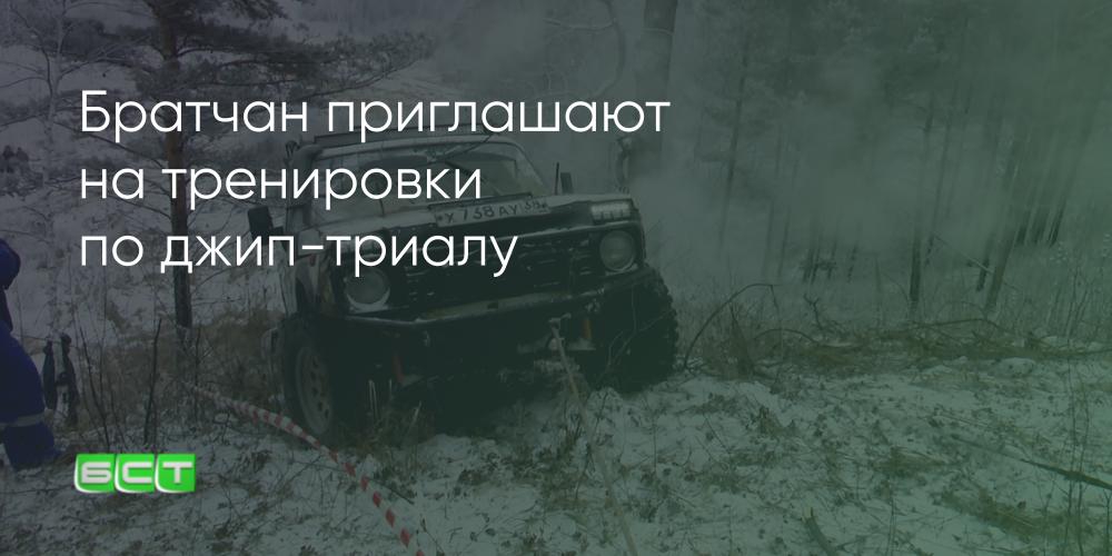 Неожиданные подъёмы, адреналин и виртуозная езда без права на ошибку. Братчан приглашают на тренировочные заезды в дисциплине «Джип-триал». Гонка пройдет в формате РФС, чтобы подготовить экипажи к ближайшим соревнованиям. Выступающим предоставят несколько спецучастков, которые они будут проходить за определённое время.