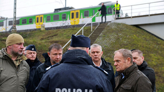 16 ноября железнодорожные пути в Мазовецком воеводстве Польши были повреждены. Польские власти назвали причиной повреждения взрыв. В первую очередь в подрыве заподозрили Россию, но позже подозреваемыми назвали двух граждан Украины. Премьер-министр Польши Дональд Туск все же связал диверсию с Москвой: по его данным, украинцы якобы «сотрудничали с российскими спецслужбами».