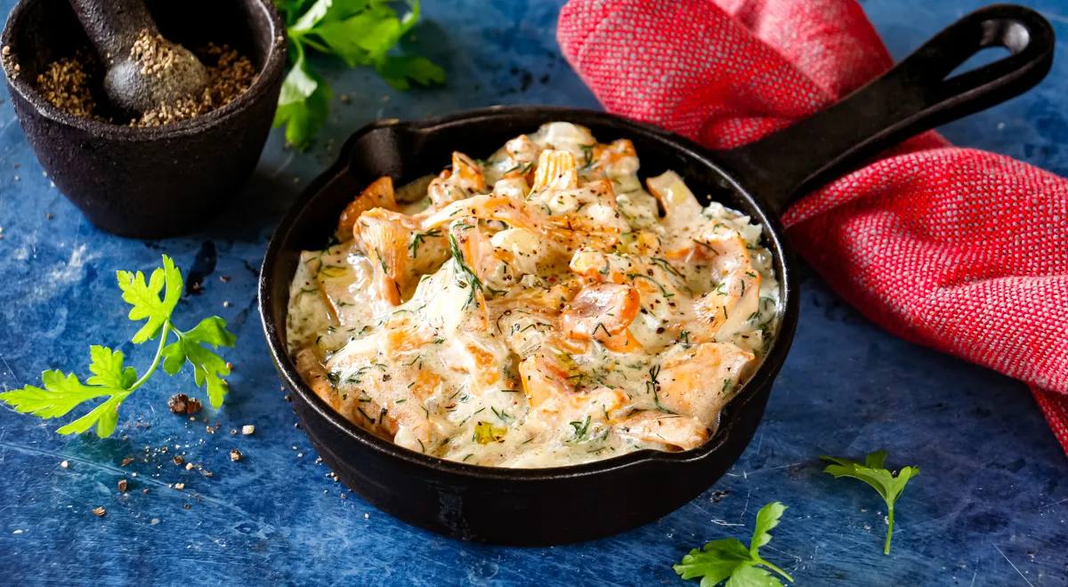 3․ Через 20–25 минут добавьте сметану, посолите и убавьте огонь до небольшого. Готовьте ещё примерно 10 минут.
