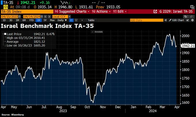 Израильские акции открылись небольшим ростом после того, как была предотвращена атака иранских беспилотников. Индекс Саудовской Аравии открылся снижением на 1,2%.
