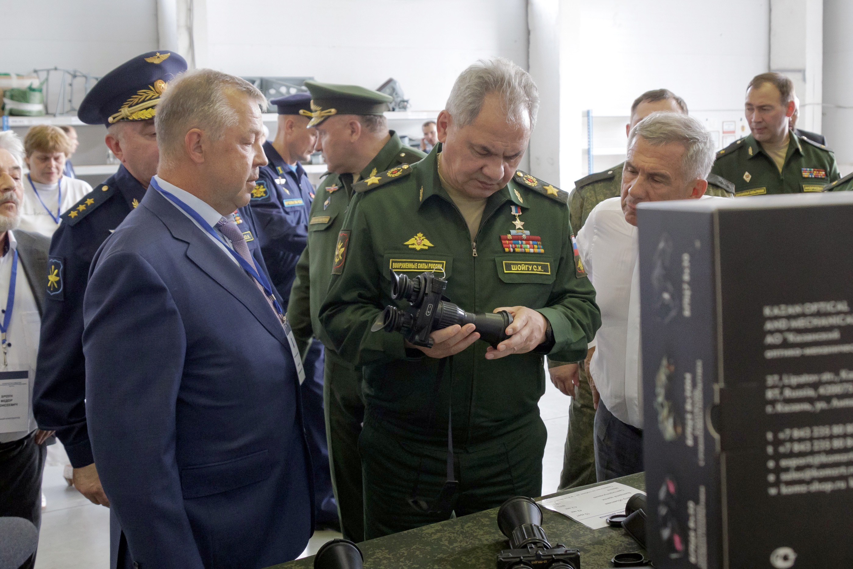 В столице Татарстана Шойгу и Минниханов заехали на Казанский вертолетный завод, где производят легкие вертолеты "Ансат" и различные модификации военно-транспортного Ми-8. Кроме того, министр обороны и глава Татарстана посетили АО "Казанский оптико-механический завод".