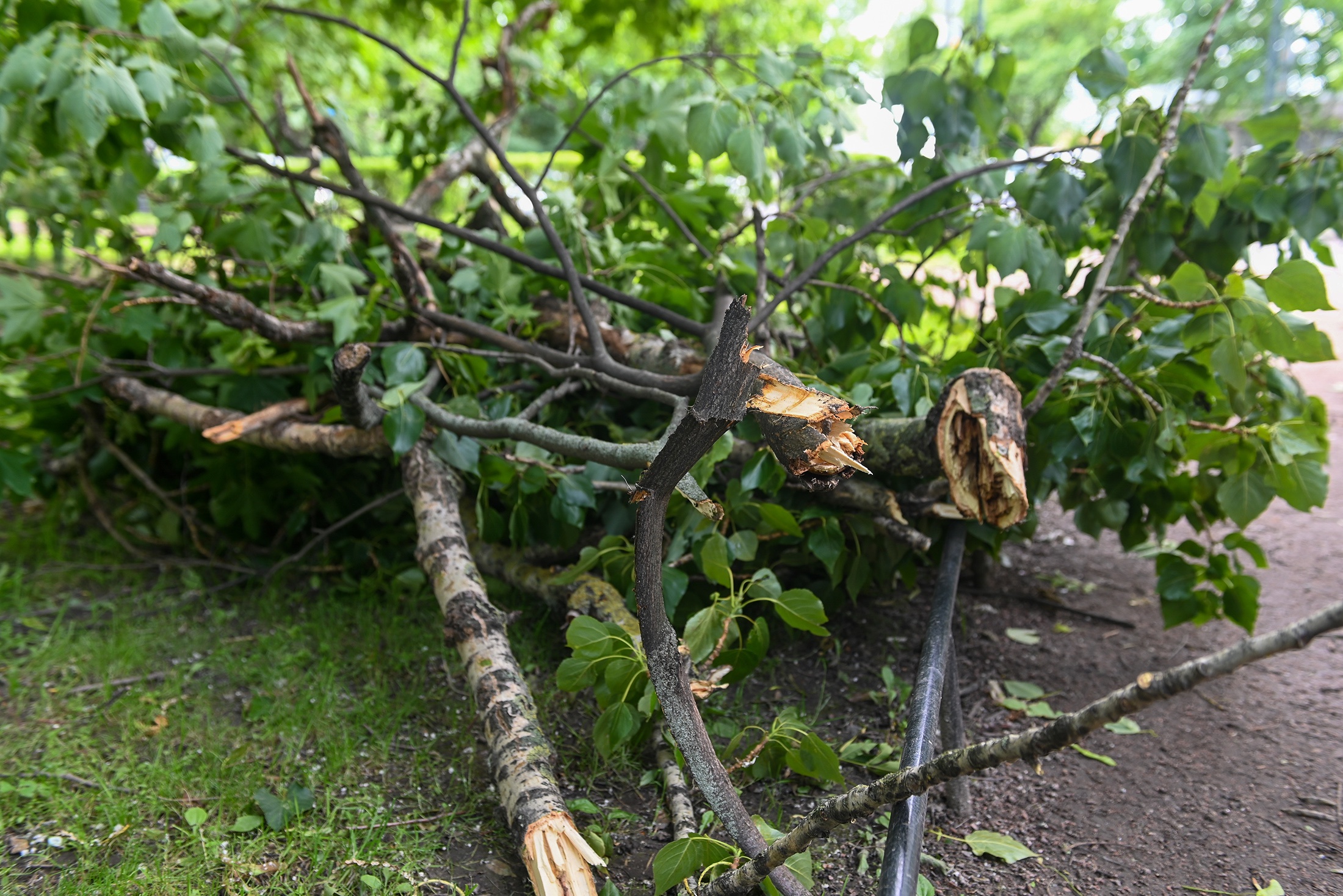 Помимо зеленых насаждений, шторм повредил линии, повалил некоторые дорожные знаки и другие элементы городской инфраструктуры.