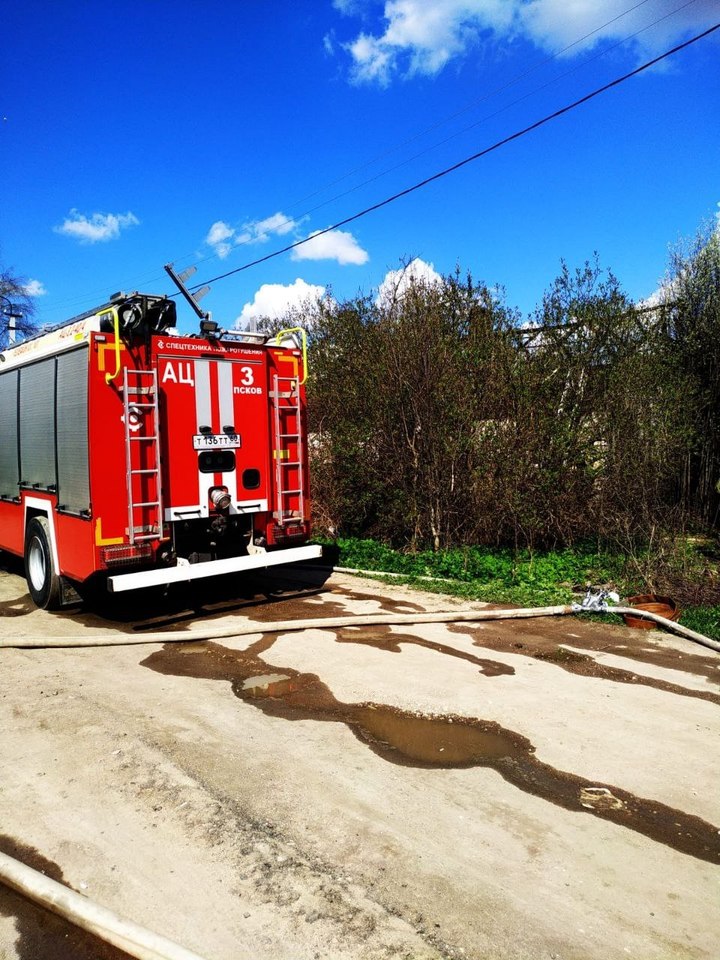 11 сотрудников МЧС тушили пожар на Старотекстильной улице в Пскове