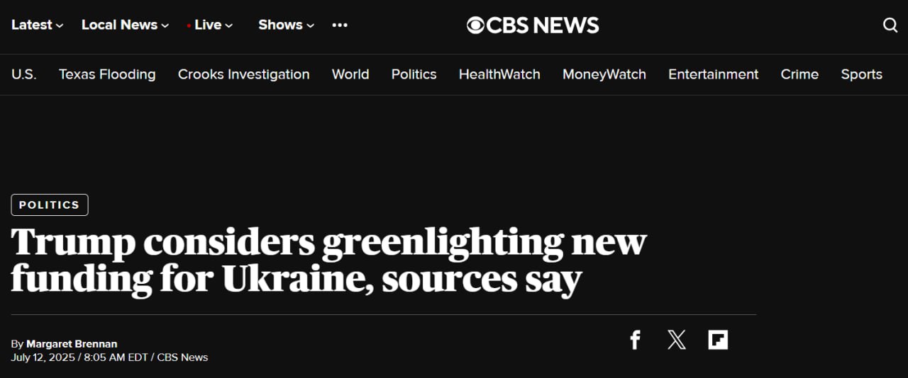 Как пишет сайт, новое финансирование может быть направлено на то, чтобы послать сигнал России, которая в последние дни увеличила количество своих ударов с воздуха по Украине. Источник возможного нового финансирования для Украины неясен. Однако американские чиновники сообщили CBS News, что Трамп имеет в своем распоряжении 3,85 миллиарда долларов, оставшихся от президентских полномочий Байдена, которые могут быть использованы для отправки американского военного оборудования в Украину. Бывшие чиновники также сообщили CBS News, что президент имеет право конфисковать около 5 миллиардов долларов иностранных российских активов и направить эти средства в Украину, хотя ни он, ни бывший президент Джо Байден не использовали эту власть.
