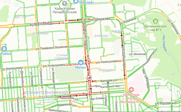 2-километровая пробка образовалась на Московском проспекте в Воронеже