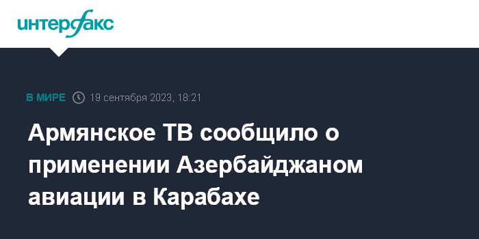 Москва. 19 сентября. INTERFAX.RU - Вооруженные силы Азербайджана начали применять авиацию в рамках операции в Нагорном Карабахе, сообщает Общественное телевидение Армении.
