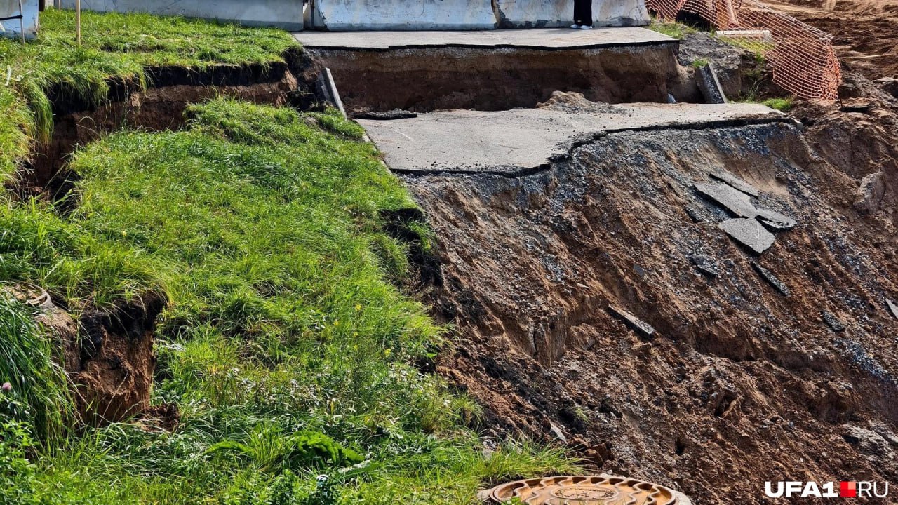 Обвал образовался рядом с 17-этажным домом №20 по улице Кусимова. Как рассказал глава Дёмского района Иван Иванов, грунт обвалился из-за выхода грунтовых вод.