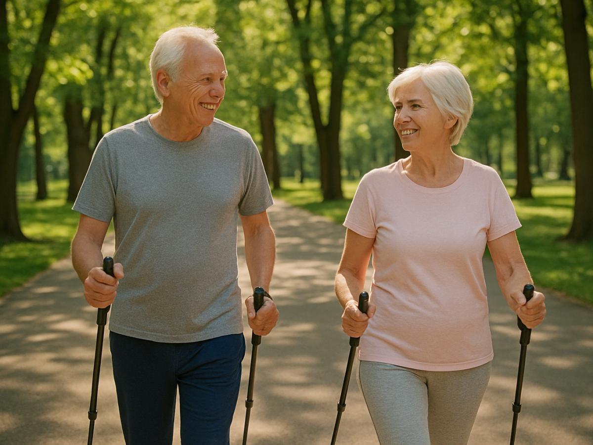 Пробуйте скандинавскую ходьбу — она улучшает осанку и укрепляет верхние мышцы тела.