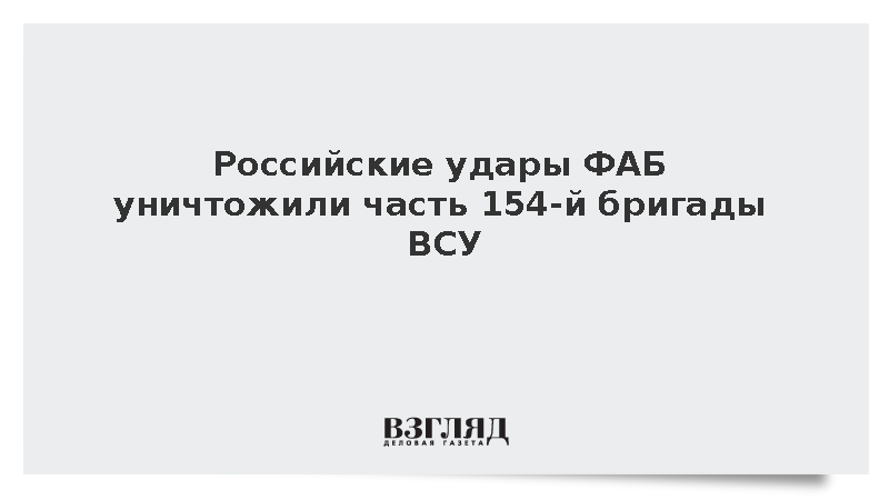 Часть 154-й бригады ВСУ, недавно переброшенной из Харьковской области, была уничтожена в результате ударов корректируемыми авиабомбами (ФАБ) на территории Днепропетровской области, сообщает ТАСС.