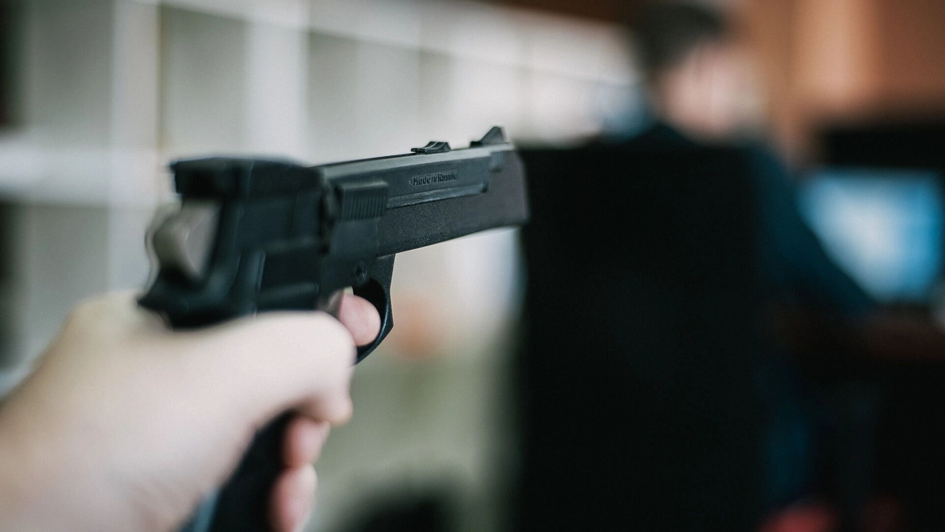 По словам очевидцев, трое загадочных мужчин о чём-то оживлённо беседовали перед зданием Национального молодёжного театра (улица Ленина, 62). Все участники ролика были одеты в балаклавы, а у одного из них был замечен пистолет.