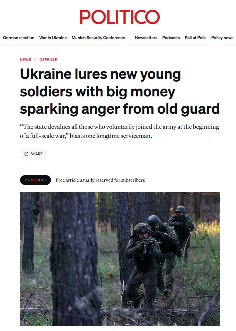 Программа Киева для привлечения молодёжи в ВСУ возмутила солдат, которые воюют, но не получают подобных бонусов — Politico