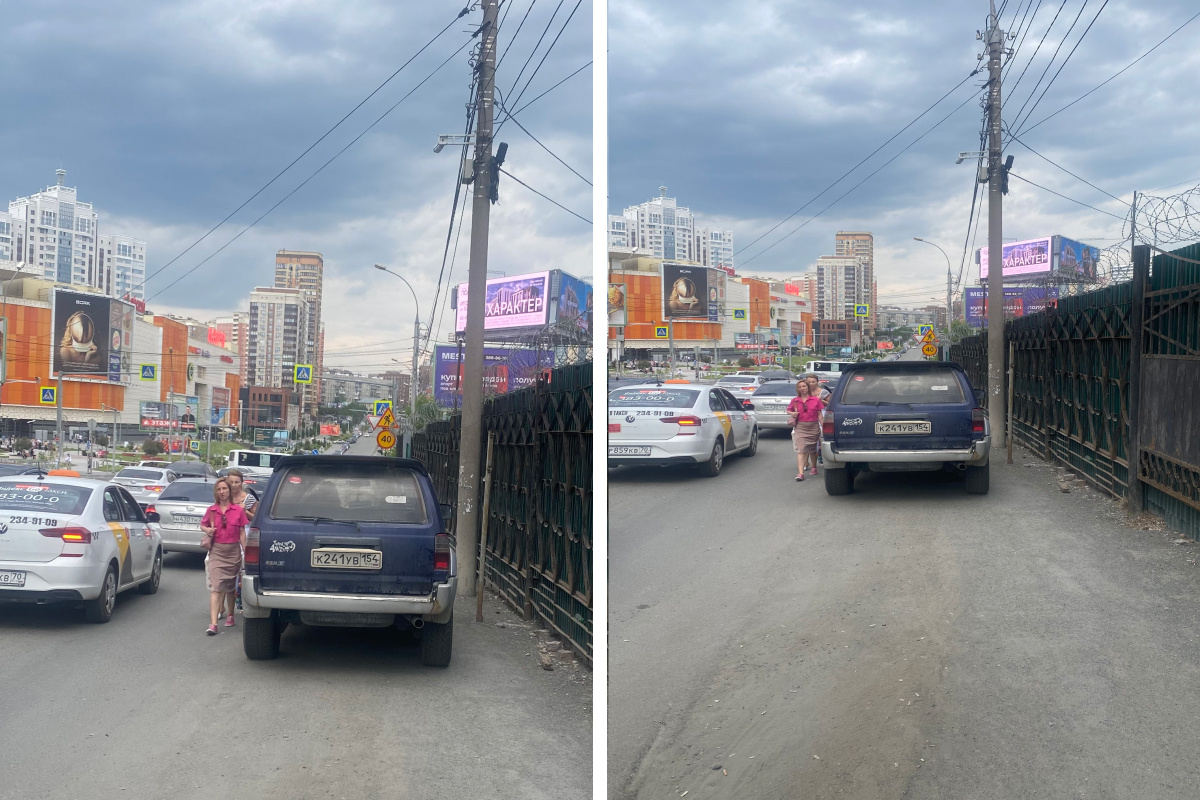 Наконец, водитель этой старенькой Toyota Hilux бросил машину на улице Военной. Там нет парковочных карманов: просто тротуар по неведомым причинам обрывается на несколько метров, а потом появляется вновь. Эту пешеходную пустоту занял автомобилист, который фактически вынудил людей обходить свой джип по проезжей части.