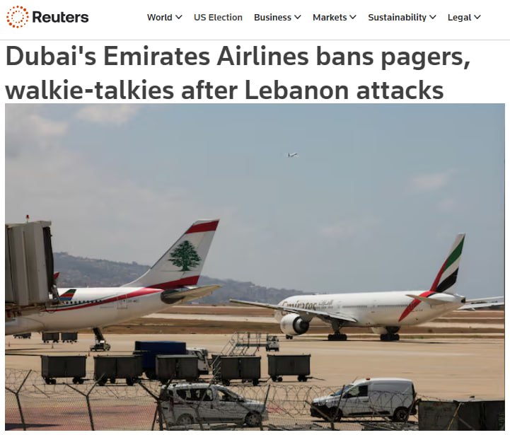 Электронные устройства, после взрывов которых пострадали тысячи человек в Ливане, будут конфискованы полицией в рамках усиленных мер безопасности полётов, сообщает Reuters.
