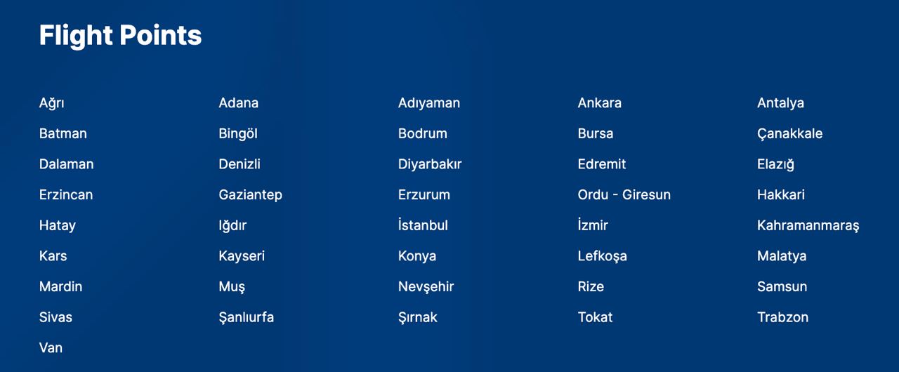 В презентации и на карте полётов прямо сейчас заявлено 40 направлений по Турции + Никосия и почти все зарубежные города из сетки AnadoluJet - даже Москва.