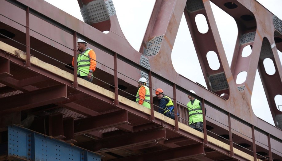 Строители начали надвижку ферменной металлической конструкции, которая станет третьим уровнем над КАД и первым трамвайным путепроводом над Кольцевой автодорогой.