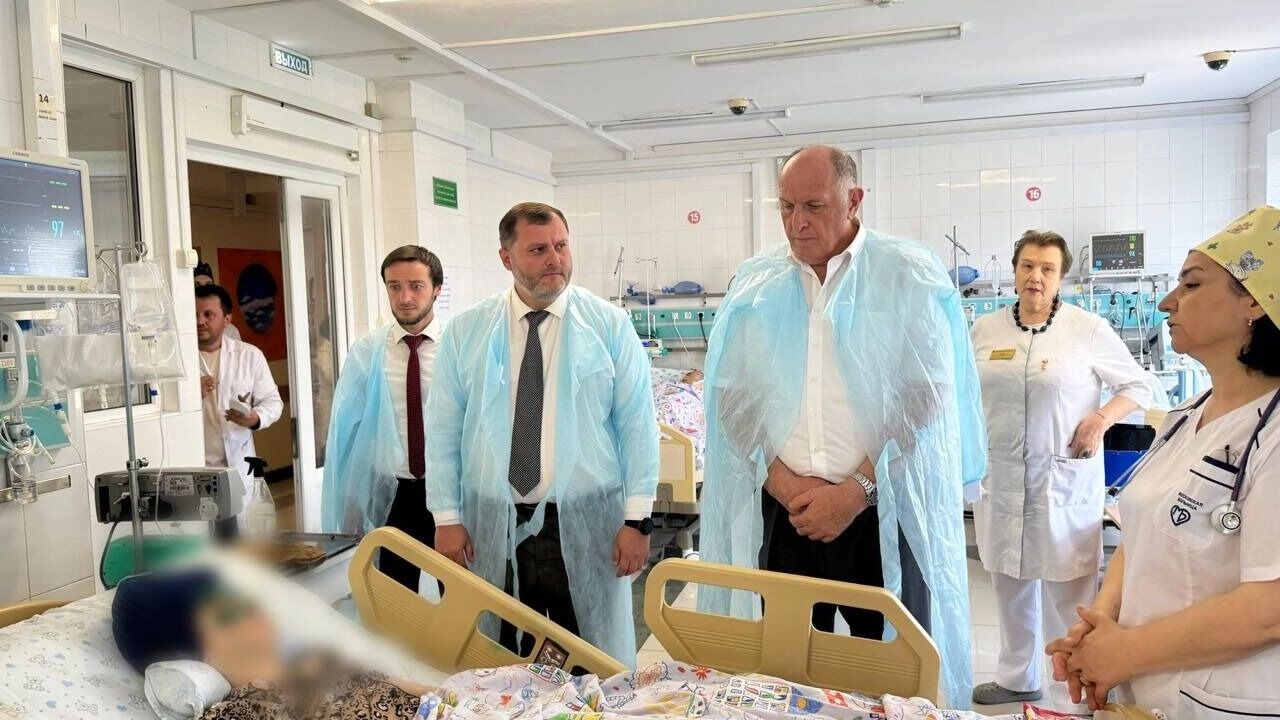 23 июля пострадавших в детской республиканской клинической больнице навестил глава правительства Дагестана Абдулмуслим Абдулмуслимов вместе с главой минздрава Дагестана Ярославом Глазовым.