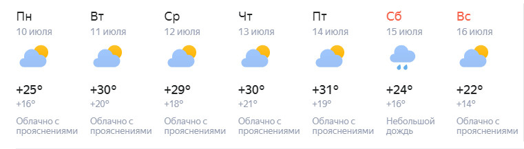 Осадки в городе прогнозируются только в субботу, 15 июля