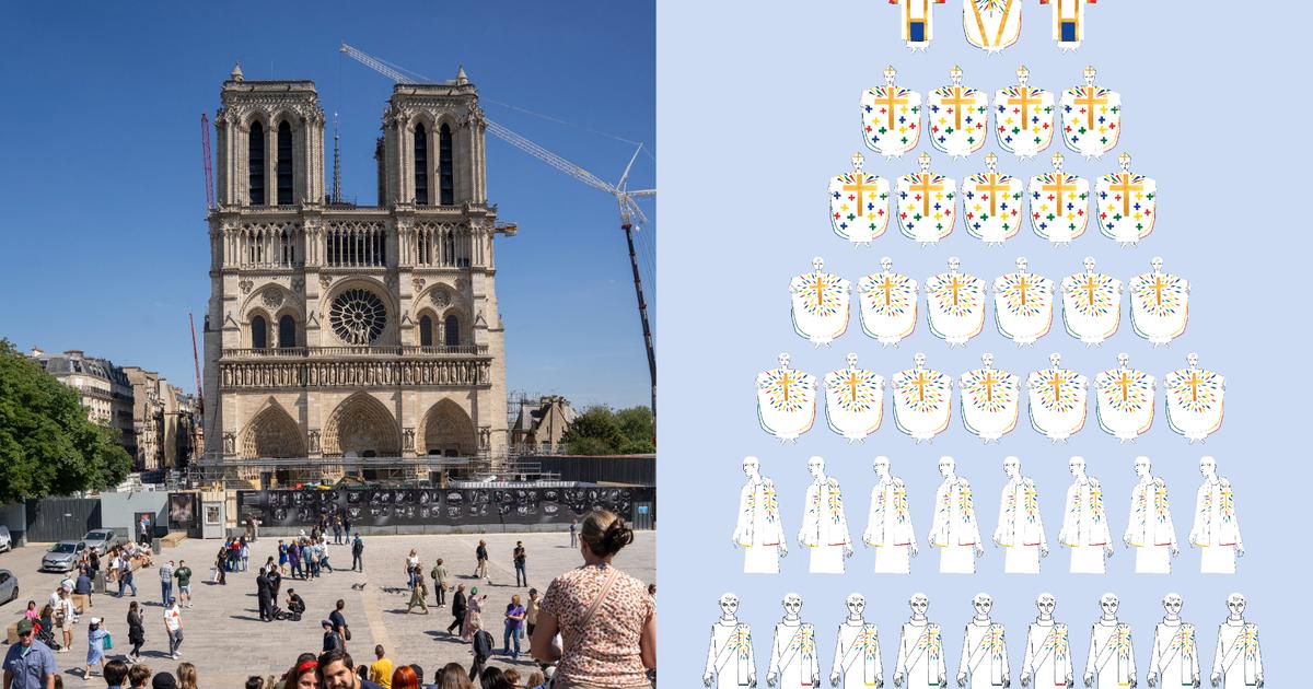 Le recteur Mgr Ribadeau Dumas et le créateur Jean-Charles de Castelbajac nous dévoilent, en exclusivité, les ornements liturgiques créés en l'honneur des célébrations de la réouverture de la cathédrale.