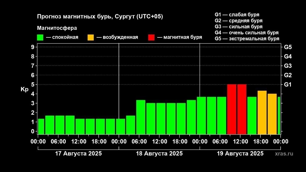 В воскресенье, 17 августа, метеозависимым югорчанам можно будет вновь расслабиться. Дело в том, что вероятность бури в течение всего дня — крайне минимальна. Правда, этот день станет последним в периоде затишья. Это следует из данных Лаборатории солнечной астрономии ИКИ и ИСЗФ.