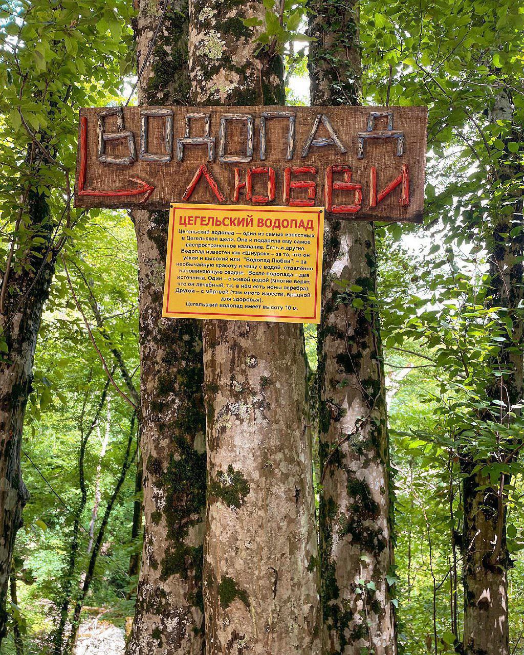 ΠΡΠ΅Π³ΠΎ Π² 16 ΠΊΠΌ ΠΎΡ ΠΠ΅Π»Π΅Π½Π΄ΠΆΠΈΠΊΠ°, Π² Π³ΠΎΡΠ°Ρ ΡΠ΅Π»Π° ΠΠ΄Π΅ΡΠ±ΠΈΠ΅Π²ΠΊΠ°, ΡΠΊΡΡΠ²Π°Π΅ΡΡΡ ΡΠ΄ΠΈΠ²ΠΈΡΠ΅Π»ΡΠ½ΡΠΉ Π²ΠΎΠ΄ΠΎΠΏΠ°Π΄. ΠΠ½ ΠΈΠ·Π²Π΅ΡΡΠ΅Π½ ΠΏΠΎΠ΄ ΡΡΠ΅ΠΌΡ ΡΠ°Π·Π½ΡΠΌΠΈ ΠΈΠΌΠ΅Π½Π°ΠΌΠΈ: Π¦Π΅Π³Π΅Π»ΡΡΠΊΠΈΠΉ Π²ΠΎΠ΄ΠΎΠΏΠ°Π΄, Π¨Π½ΡΡΠΎΠΊ ΠΈ ΠΠΎΠ΄ΠΎΠΏΠ°Π΄ ΠΡΠ±Π²ΠΈ. ΠΡΡΠΎΡΠΎΠΉ ΠΎΠΊΠΎΠ»ΠΎ 10 ΠΌΠ΅ΡΡΠΎΠ², ΡΡΠΎΡ ΠΏΡΠΈΡΠΎΠ΄Π½ΡΠΉ ΡΠ΅Π΄Π΅Π²Ρ ΠΎΡΠΎΠ±Π΅Π½Π½ΠΎ ΠΏΡΠΈΠ²Π»Π΅ΠΊΠ°ΡΠ΅Π»Π΅Π½ Π»Π΅ΡΠΎΠΌ, ΠΊΠΎΠ³Π΄Π° ΠΌΠΎΠΆΠ½ΠΎ ΠΎΡΠ²Π΅ΠΆΠΈΡΡΡΡ Π² Π΅Π³ΠΎ ΠΏΡΠΎΡ Π»Π°Π΄Π½ΡΡ Π²ΠΎΠ΄Π°Ρ .
