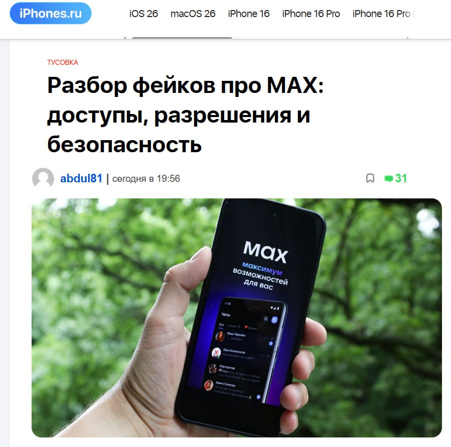 В сети разгоняют страшилки про новый мессенджер MAX: мол, у него «шпионские модули», «тотальный доступ к телефону» и «слежка за каждым шагом». Разберёмся по-честному.