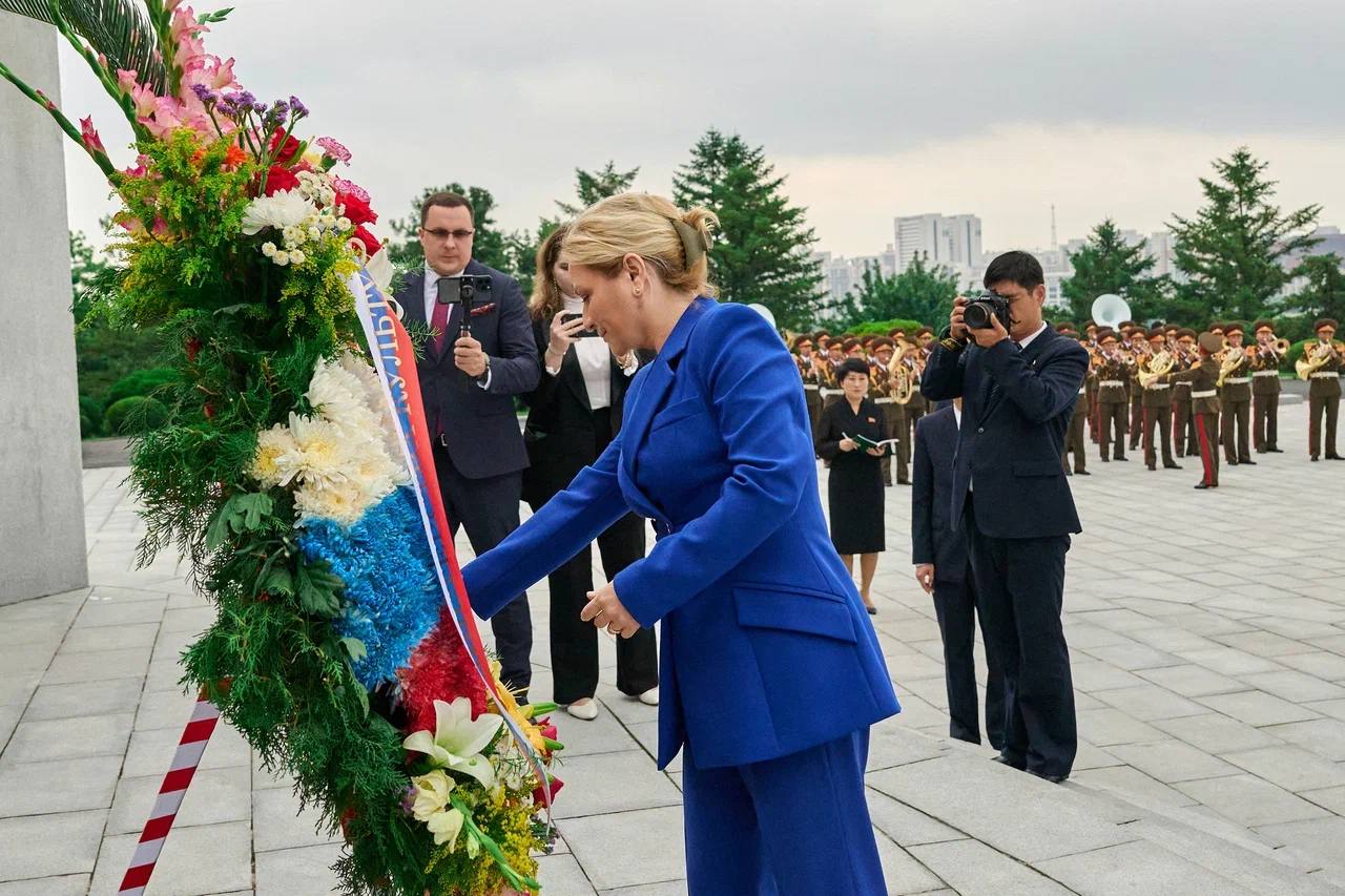 Министр культуры Любимова возложила цветы к Монументу Освобождения в Пхеньяне, почтив память советских воинов, павших при освобождении Кореи в годы Второй мировой войны.