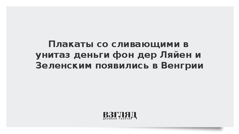 Плакаты со сливающими в унитаз деньги фон дер Ляйен и Зеленским появились в Венгрии