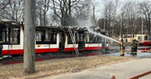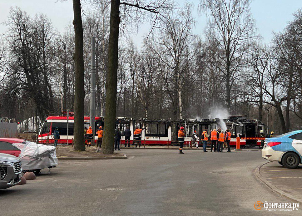 Вагон полыхал на Савушкина. Трамваи стоят, автобусы идут в объезд