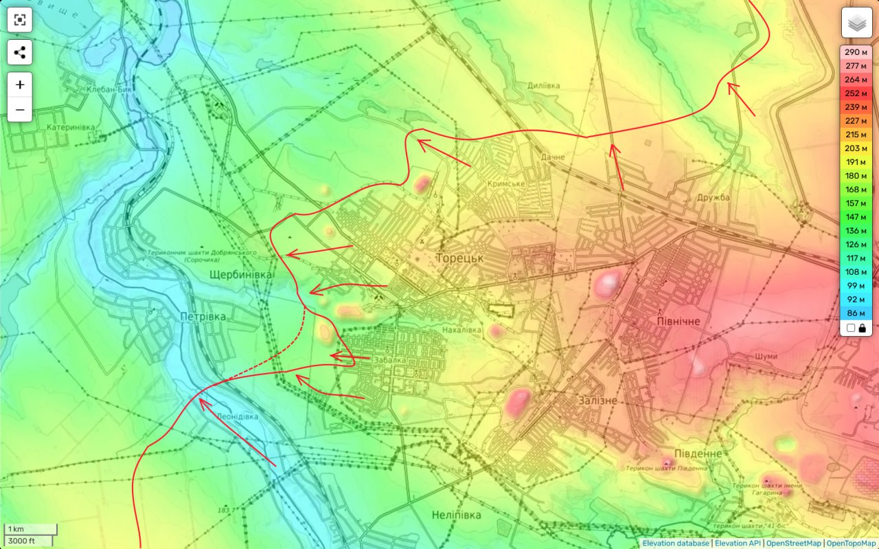 Похоже, противник уже понял, что Торецка (в любой его части) ему не видать, как своих ушей, а потому, после недолгого (упорного) сопротивления, он начал отходить на исходные позиции и западнее города.