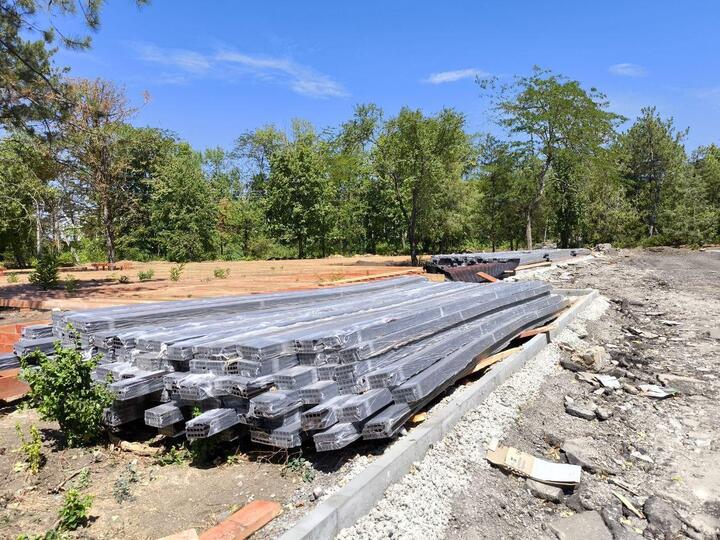 Кроме того, Якутия обеспечила поставку досок для обустройства настила в зоне фудкорта парка Докучаевска. Строительная бригада, состоящая из якутов, там же укладывает тротуарную плитку. Значительный объем бордюров и поребриков уже смонтирован. Подготовлены необходимые основания для укладки асфальтового покрытия, включая выравнивание грунта и подготовку дорожного полотна.
