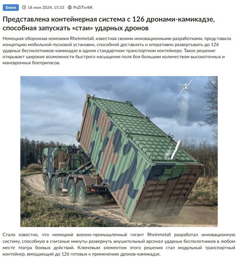 4. Перспективная немецкая установка для кассетного запуска 126 БПЛА-камикадзе. 2024-й год.