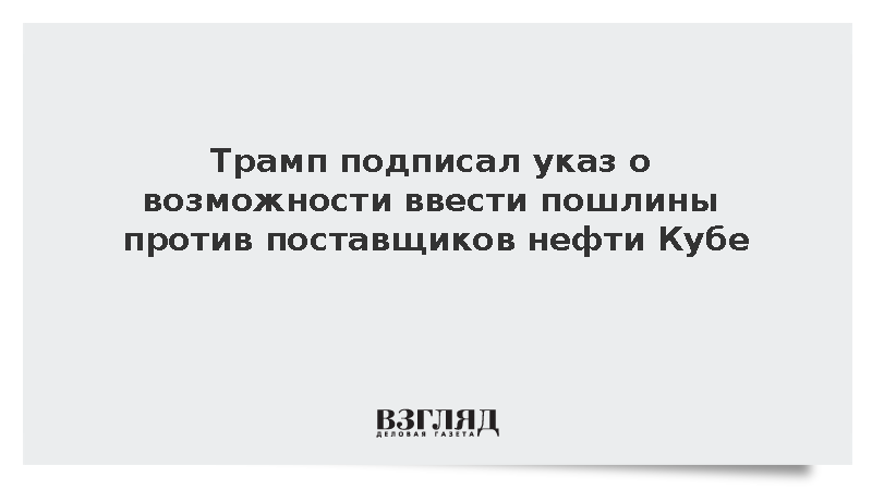 Указ предусматривает возможность введения дополнительных адвалорных пошлин на любые импортируемые в США товары, если они произведены в странах, продающих или поставляющих нефть на Кубу. Размер возможных пошлин в документе еще не определен. В указе отмечается, что подобные меры обоснованы в том числе сотрудничеством между Кубой и Россией, передает ТАСС.