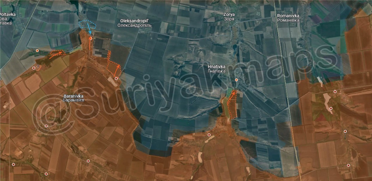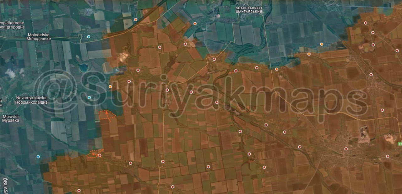 2. Ситуация на Константиновском направлении: Российская армия достигла окраин Старой Николаевки и пытается закрепиться в населенном пункте. Кроме того, российские войска продвинулись севернее Зеленого Поля и северо-восточнее Водяного Второго. Также продолжаются бои за северные склады Тарасовки.