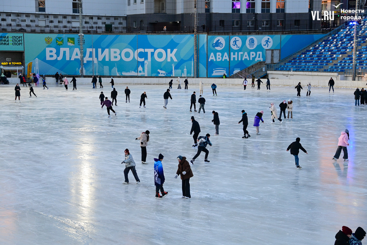 В 19:00 незатейливая развлекательная программа для детей посреди катка сместилась на небольшую сцену у борта. Пока ожидали церемонию открытия, световые мачты отключили, оставив только цветные стробоскопы. И травмоопасный каток превратился в каток на выживание. Торжественная церемония много людей не собрала, да и высоких гостей не было. Замглавы администрации Владивостока Максим Акульшин, немного оправдываясь, поздравил катающихся с открытием «Авангарда».