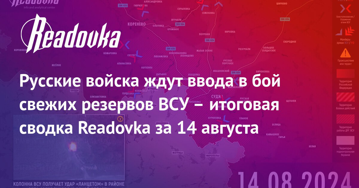 Русские войска ждут ввода в бой свежих резервов ВСУ – итоговая сводка Readovka за 14 августа