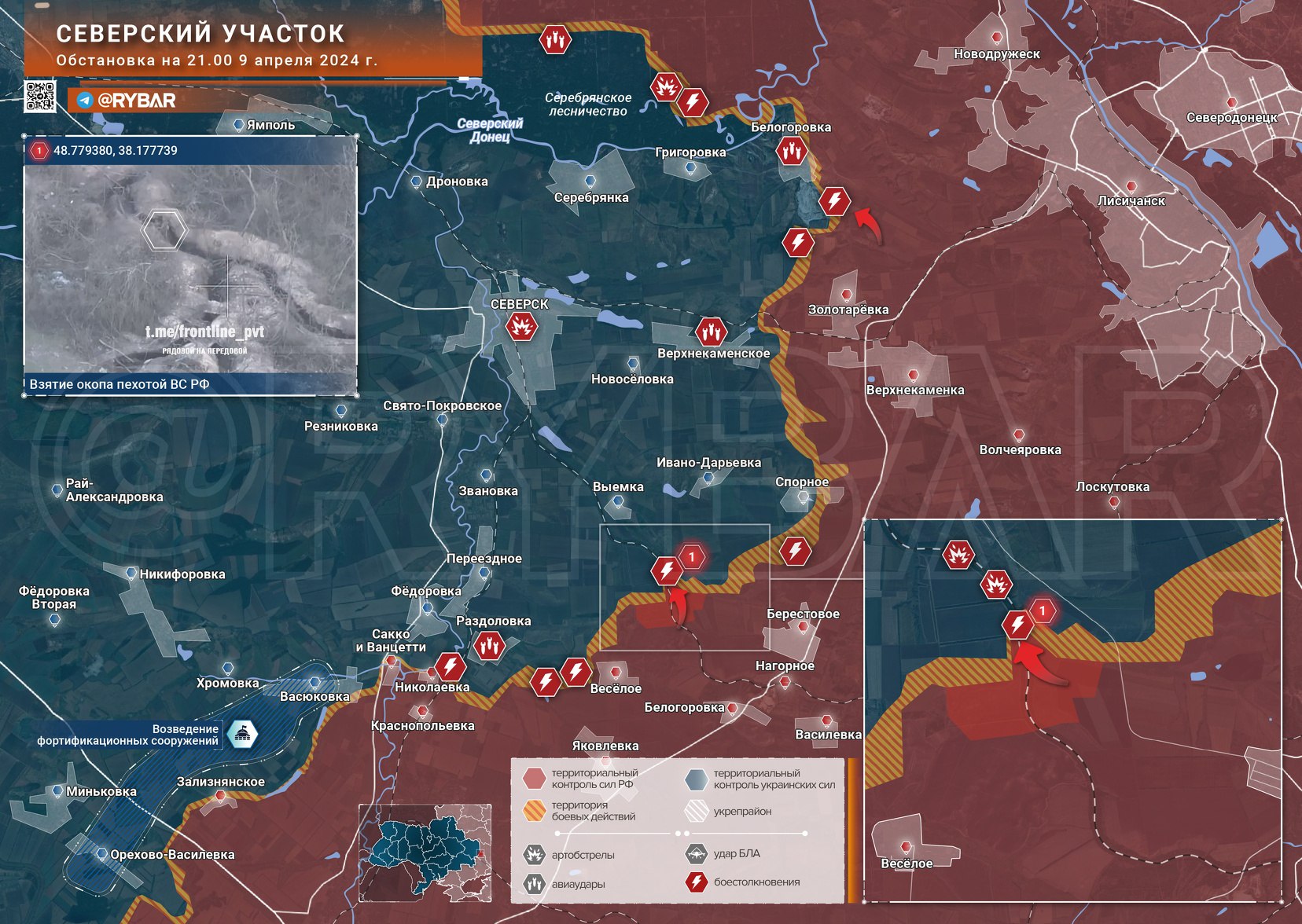На Северском направлении в районе Белогоровки продолжаются бои в окрестностях Попаснянского водоканала. ВС РФ зацепились за восточные окраины отвала мелового карьера, и, по некоторым данным, продвигаются к югу от населенного пункта.