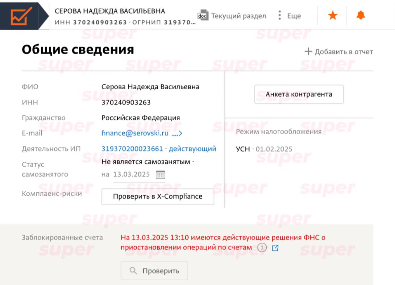 Надин Серовски попала под раздачу ФНС. Ее счета заблокировали из-за непредоставления налоговой декларации по ИП.