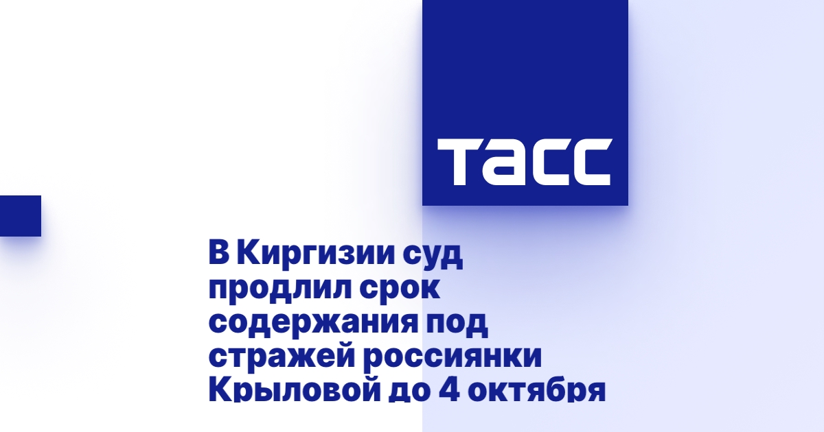 "Постановлением Первомайского районного суда города Бишкек ходатайство следователя ГСУ ГКНБ (Главного следственного управления Государственного комитета национальной безопасности) Кыргызской Республики удовлетворено, срок примененного экстрадиционного ареста в отношении Крыловой продлен до 4 октября 2023 года с содержанием в учреждении № 21 Службы исполнения наказаний при министерстве юстиции", - сказала представитель пресс-службы.