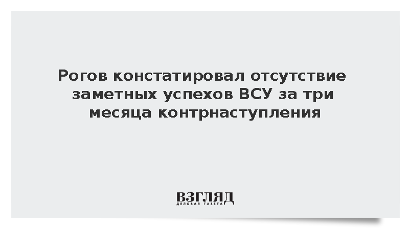 Украинская армия за три месяца контрнаступления не смогла достичь каких-либо значимых успехов на Запорожском направлении, заявил руководитель движения «Мы вместе с Россией» Владимир Рогов.