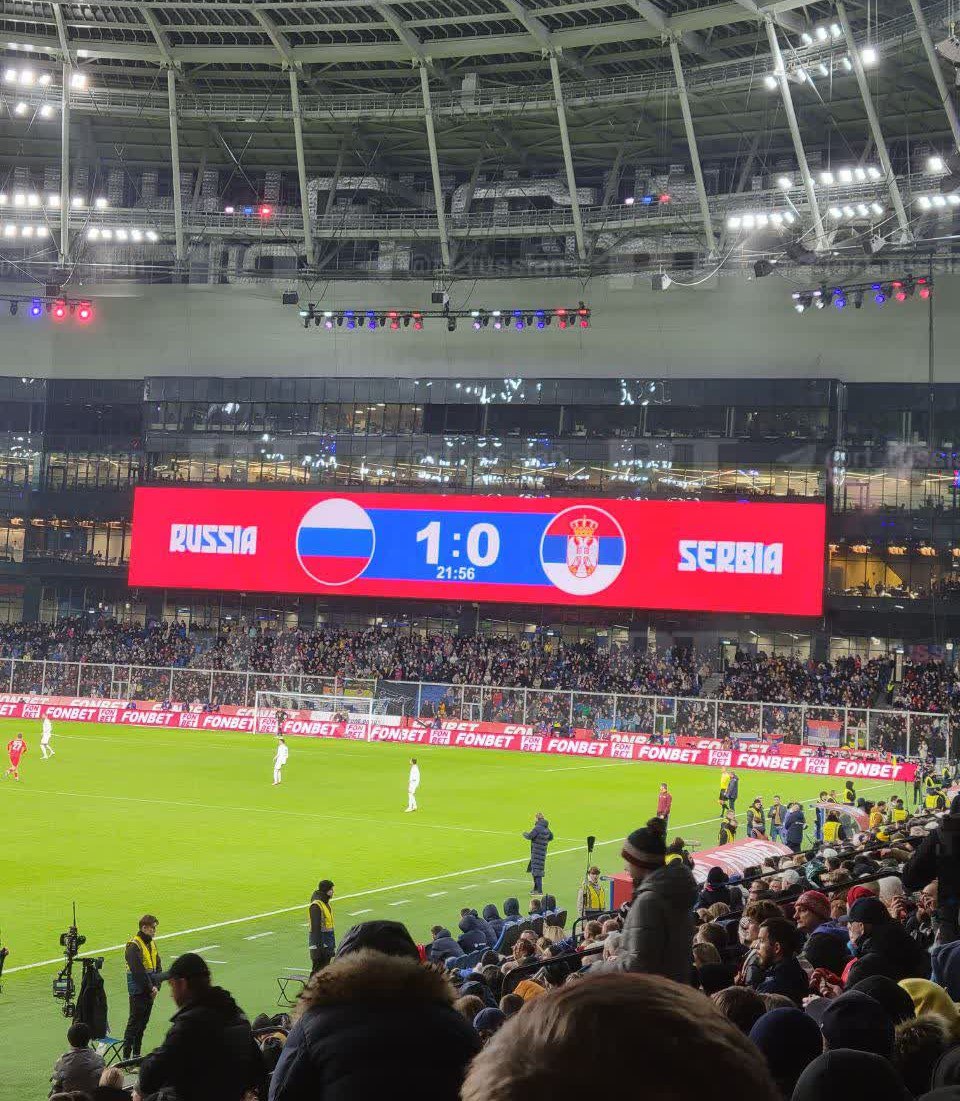 Счёт 2:0 в пользу России. Антон Миранчук открыл счёт, реализовав пенальти, второй гол забил Максим Осипенко.