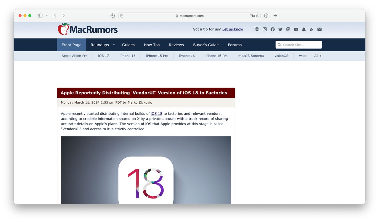 Apple уже тестирует iOS 18, а именно — версию VendorUI. Перед выпуском каждого обновления Apple разрабатывает несколько вариантов iOS: