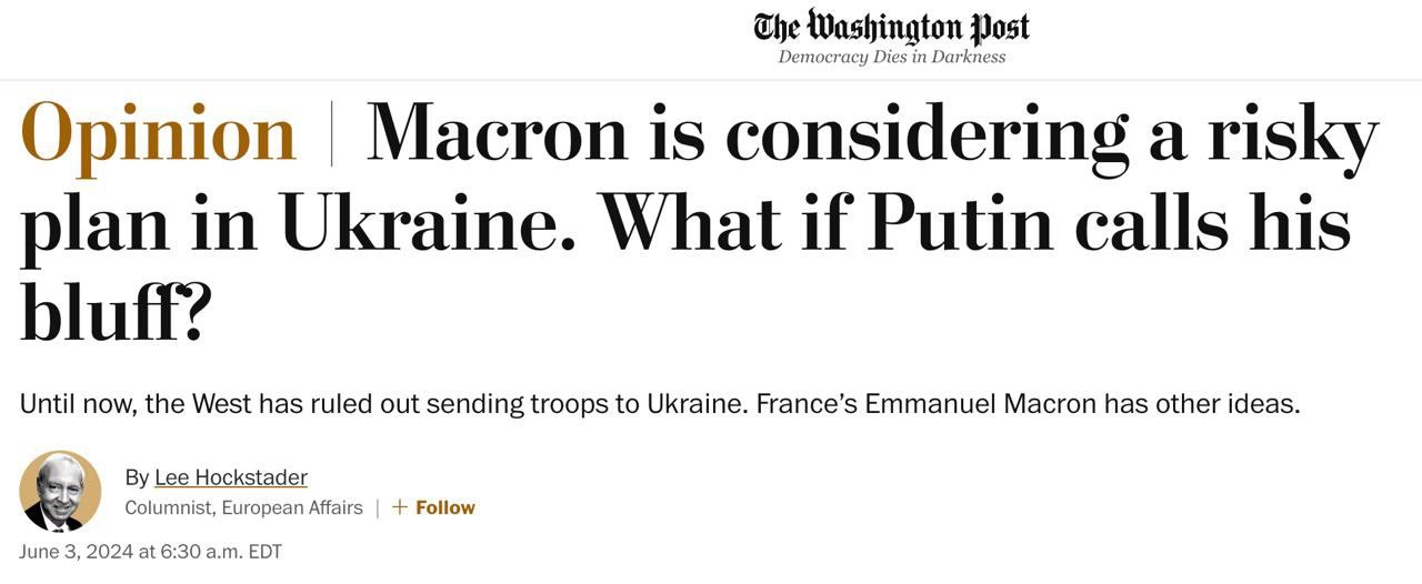 Макрон блефует, заявляя о возможности отправки войск в Украину, считает французский колумнист The Washington Post Ли Хокстейдер.