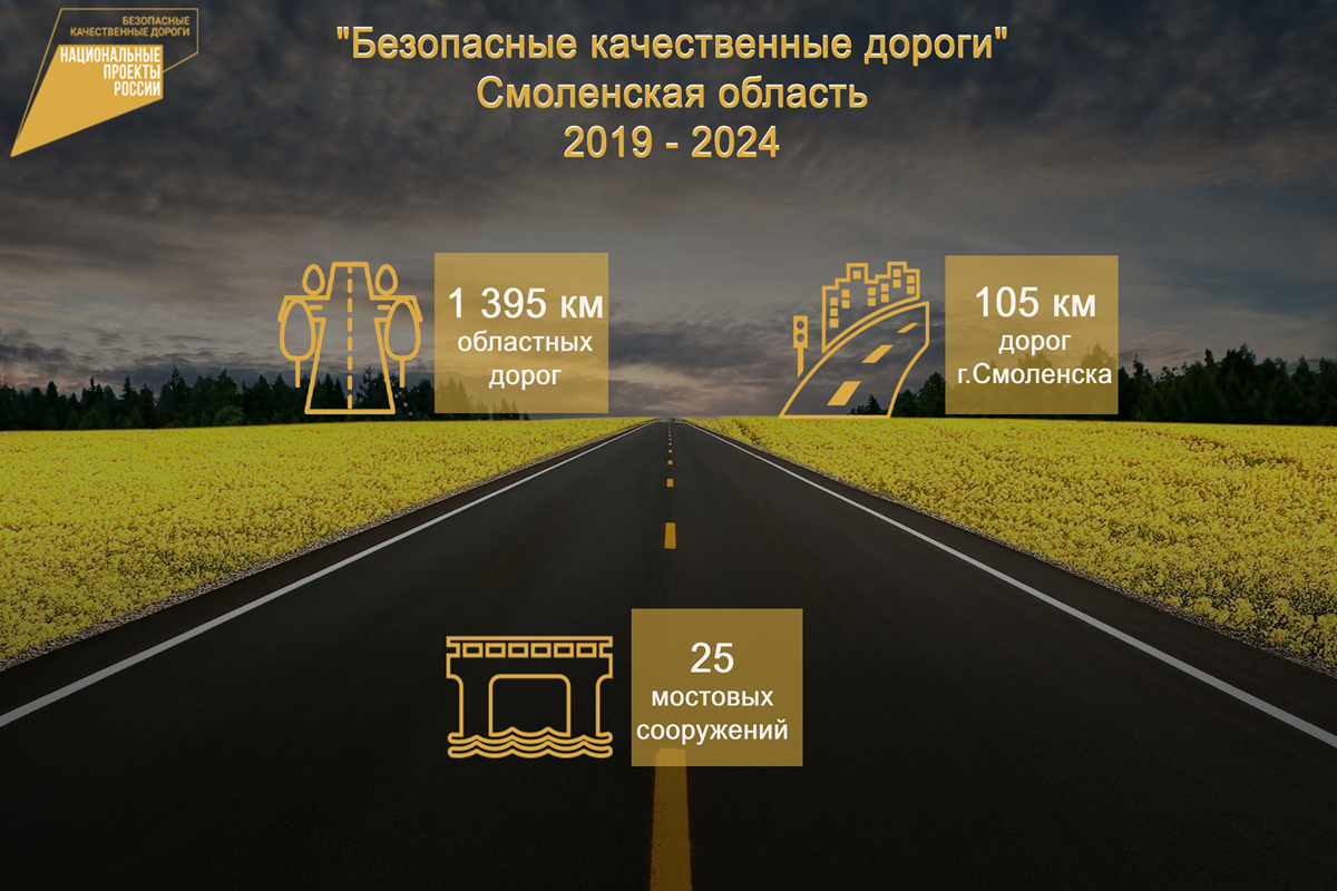 За 2019-2024 годы в рамках национального проекта «Безопасные качественные дороги» в Смоленской области отремонтировано 1395 километров дорог. С 2025 года в регионе реализуется новый нацпроект под названием «Инфраструктура для жизни». В «Смоленскавтодоре» рассказали, что за эти годы 742 километра на различных участках «отреставрировали» силами самой дорожной компании.