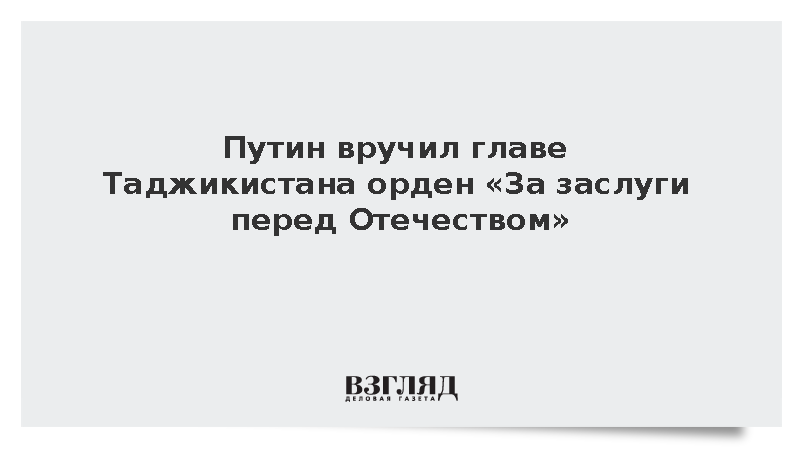 Президент Владимир Путин вручил своему коллеге из Таджикистана Эмомали Рахмону российский орден «За заслуги перед Отечеством» III степени.