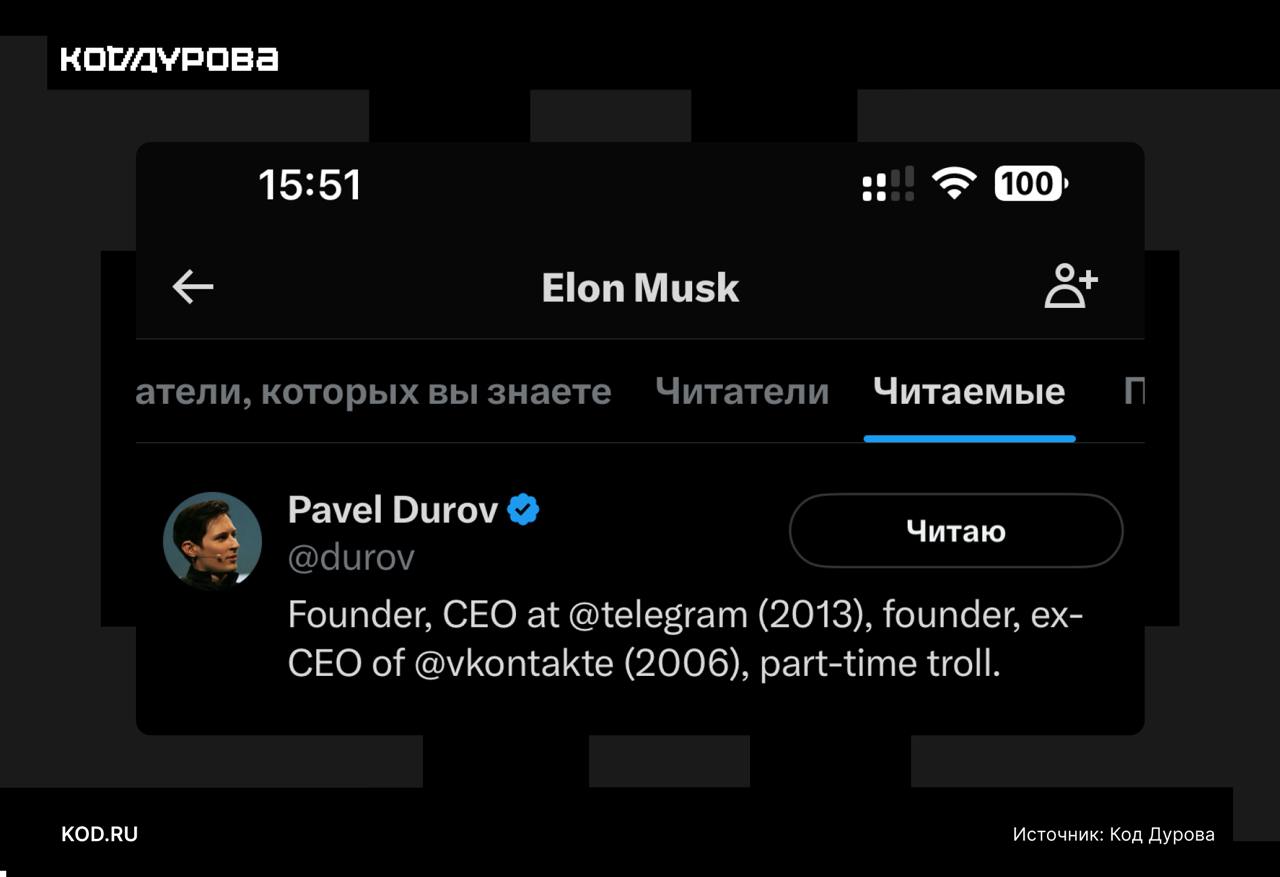 — При этом Маск оказался единственным, кого Дуров читает в X.