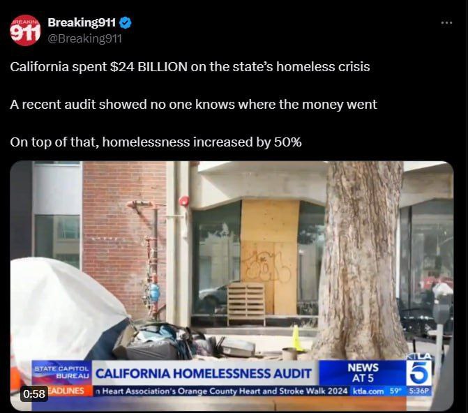 Калифорния потратила 24 миллиарда долларов на борьбу с бездомностью в штате, но за время действия программы количество бездомных в регионе увеличилось на 50%