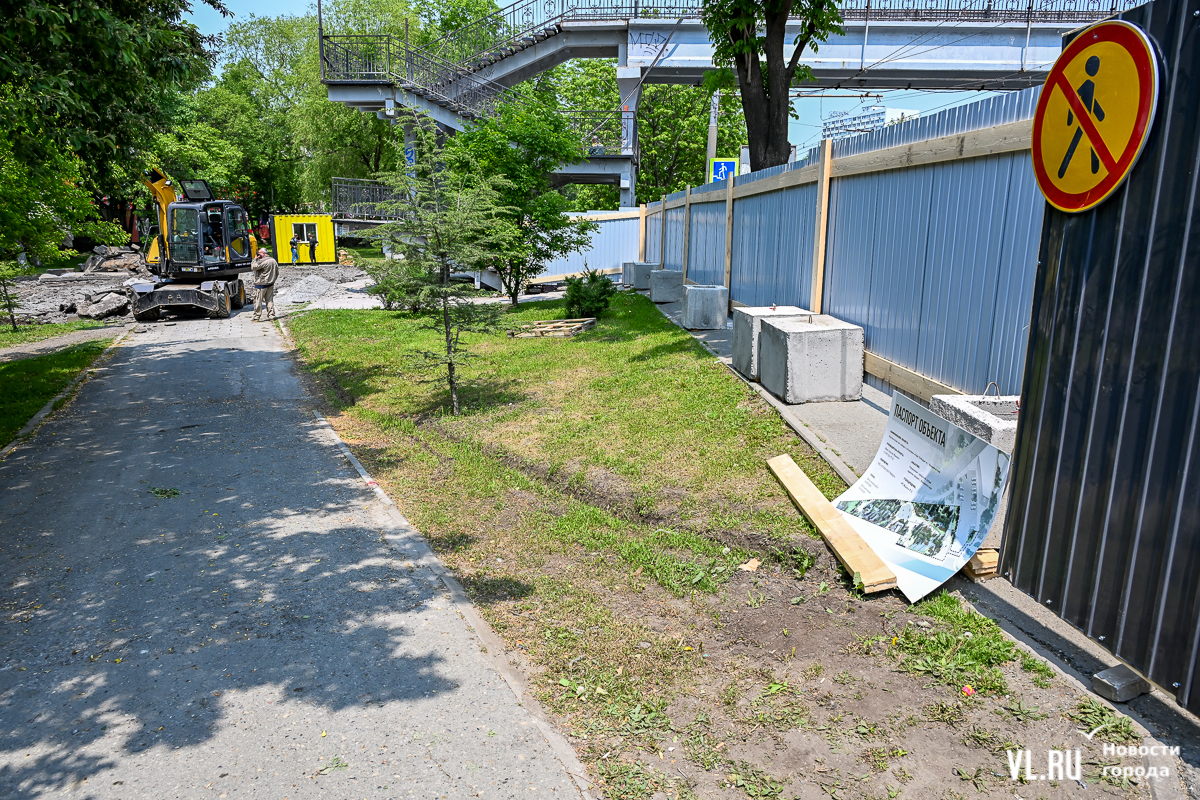 Во Владивостоке на Второй Речке огородили участок между строящимся ЖК Stark и остановкой «Парк Победы» (по направлению в город). Здесь за счёт средств застройщика пройдёт комплексное благоустройство территории, работы планируется закончить до середины октября. За это время планируется решить проблему подтоплений и создать новые прогулочные зоны, сохранив имеющееся озеленение. Работы будет выполнять Concrete Jungle.
